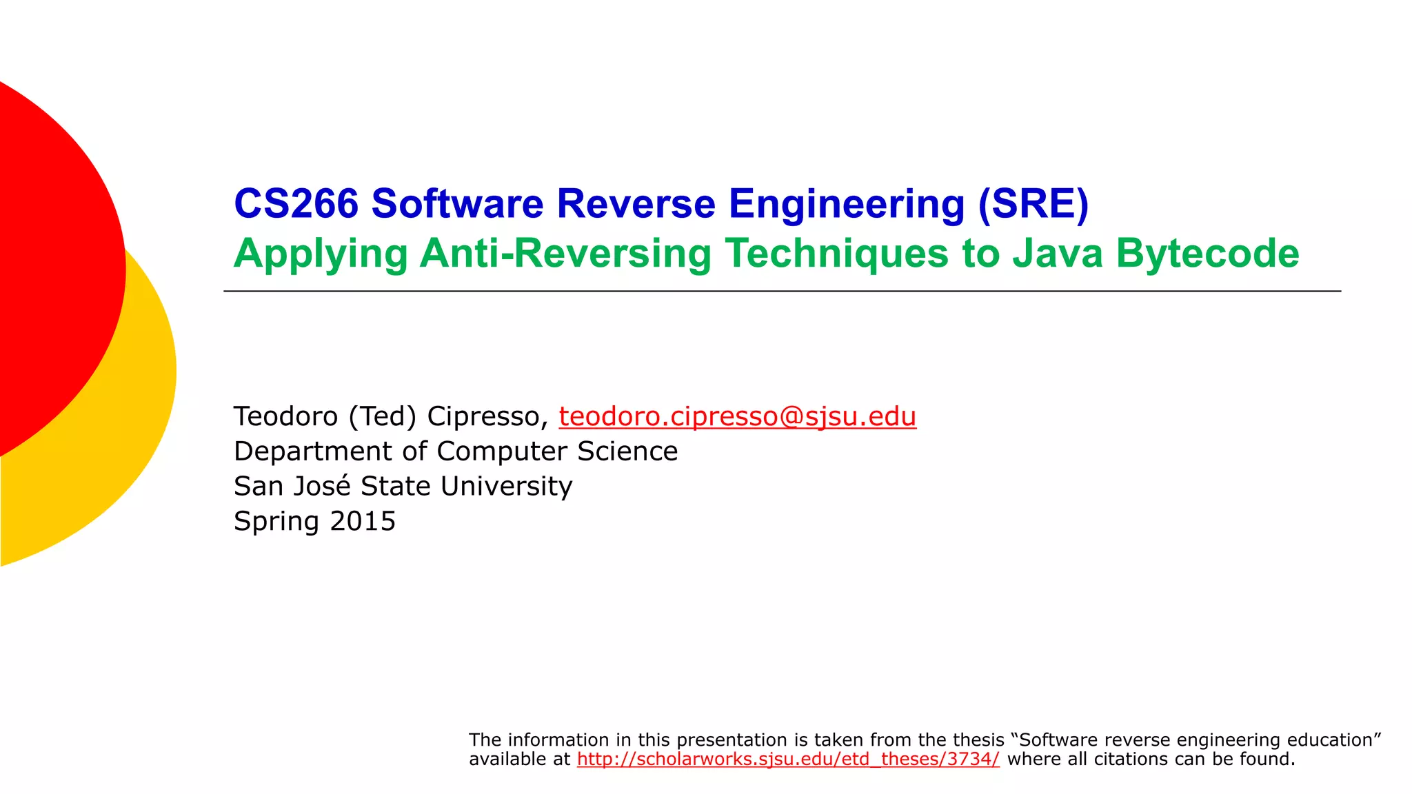 The document discusses anti-reversing techniques for Java bytecode aimed at protecting software from reverse engineering by complicating accessibility to code and algorithms. It outlines various methods such as obfuscation, eliminating symbolic information, and the use of anti-debugger techniques, while highlighting the trade-offs in terms of size and efficiency. The effectiveness of these techniques as deterrents is emphasized, acknowledging that complete prevention of reverse engineering is not feasible.