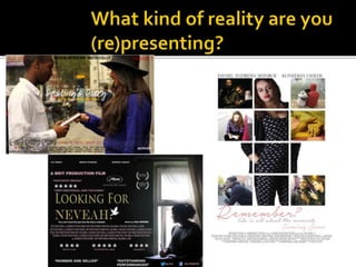 The document discusses how stereotypes are used in media according to scholar Dyer. Dyer argues that stereotypes can serve as a point of reference in narratives where characters are not fully developed, as a shortcut to convey complex social meanings, and as a way for creators to express their own views and values through the media they produce. The document asks how stereotypes may have been used in certain media productions and what meanings are constructed through symbols, images, and words within those productions.