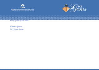 Yashdeep Srivastava was given a Certificate of Appreciation for delivering a motivational Pep Talk on December 4, 2014 to two learner groups (MJA70 and MJA71) at TCS. Feedback from the learners showed that the objectives of the sessions were fully met. By sharing what he learned, Yashdeep lived the TCS value of learning and sharing and made the Pep Talk a great success. He was encouraged to take on more such initiatives in the future.