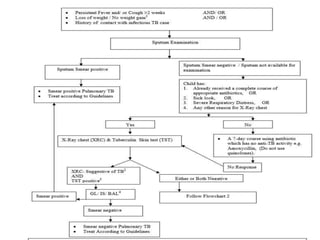 The document discusses the approach to cough and its management. It defines cough and describes the cough reflex mechanism. Cough can be initiated voluntarily or involuntarily and involves both afferent and efferent pathways. Cough receptors are located in various areas including the pharynx, sinuses, stomach and ears. The cause of cough can be extra-pulmonary. A careful history regarding onset, character, production, timing and associated symptoms is important to narrow the diagnosis. Acute, recurrent and chronic cough have different etiologies depending on the patient's age. Proper diagnosis involves considering clinical features, sputum examination and treatment response.