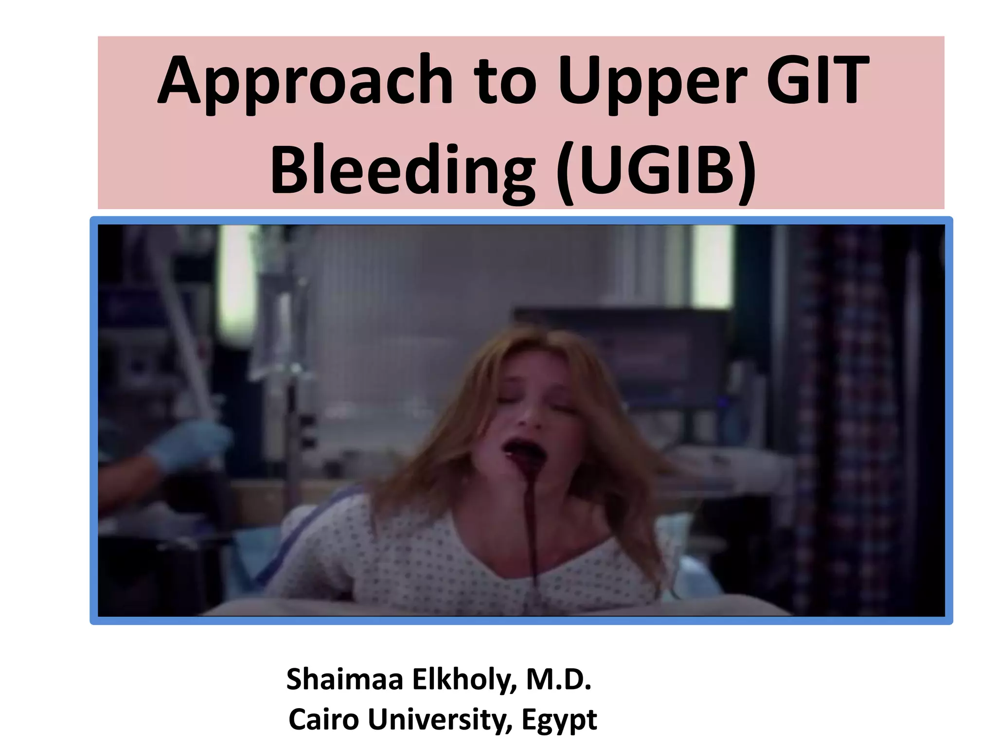 The document discusses the approach to upper gastrointestinal bleeding (UGIB), detailing its definitions, epidemiology, and management strategies. It highlights the mortality rates associated with UGIB and the common causes, primarily peptic ulcer disease and variceal hemorrhages, along with treatment protocols such as resuscitation and endoscopic interventions. Finally, it emphasizes the need for risk assessment and tailored management based on individual patient factors.