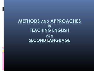The document discusses various language teaching approaches, methods, procedures and techniques. It defines each term and provides examples. Approaches describe theories of language learning that inform practices. Methods are practical realizations of approaches, including procedures and techniques. Procedures are sequences of techniques. Techniques are specific classroom activities. Some common approaches discussed include Grammar-Translation, Direct Method, Reading Approach, Audiolingualism, Cognitive Approach, Affective-Humanistic Approach, Comprehension-Based Approach and Communicative Approach.