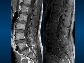 1) The document discusses appropriate imaging for back pain, describing different imaging modalities like X-rays, CT scans, bone scans, and MRI.