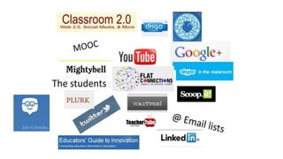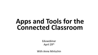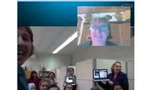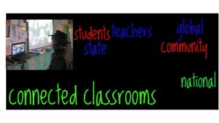 The document discusses apps and tools for connecting classrooms globally, including Skype, Eduwebinar, Google apps, Twitter, Padlet, and Voicethread. It provides information on using these tools for blogging, backchannel discussions, connecting with other schools internationally, and sharing resources. Specific examples mentioned include using Twitter for student question forums and connecting classrooms in Kenya to the world.