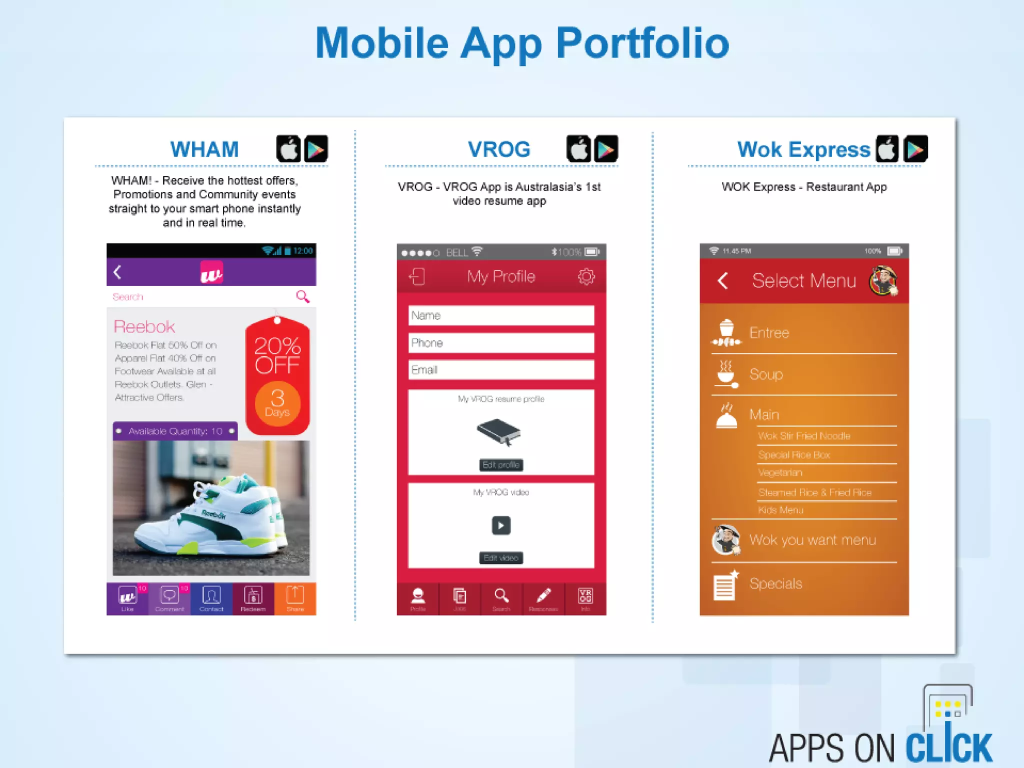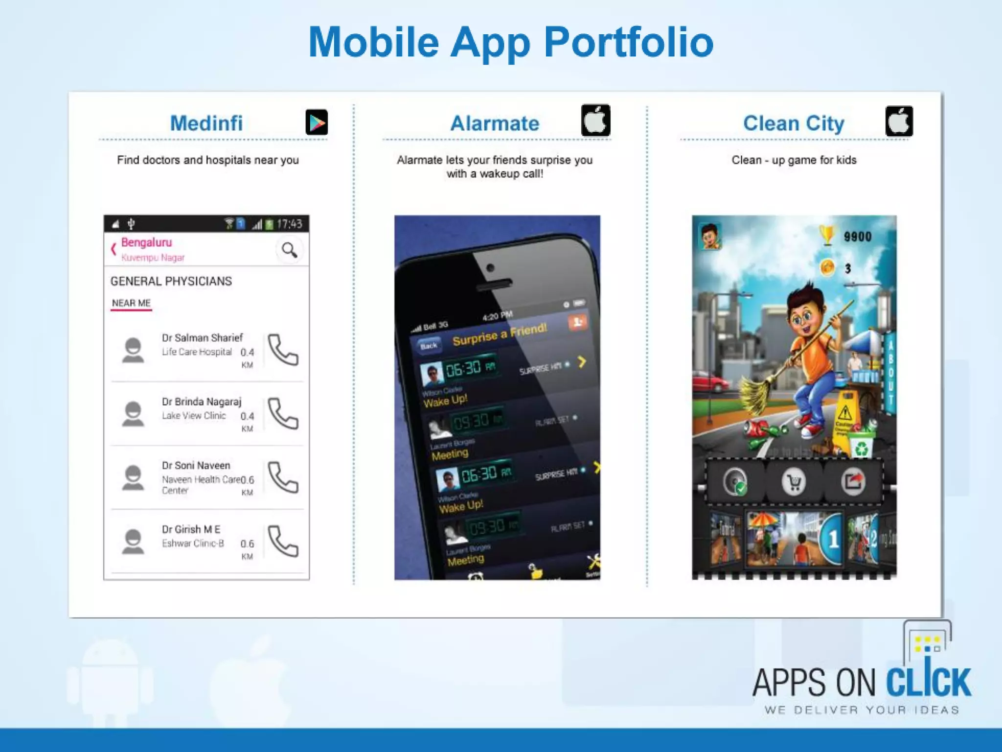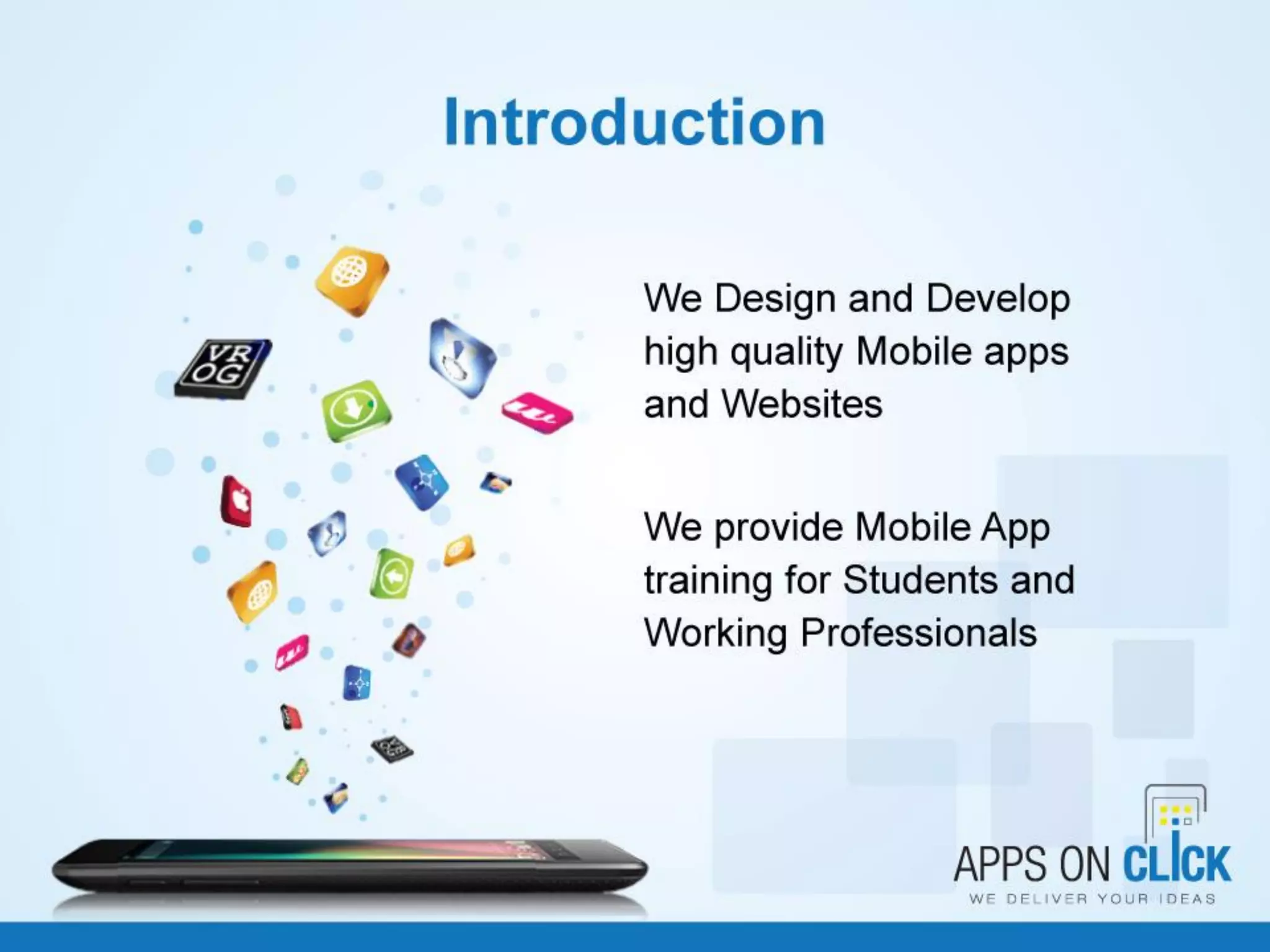 We build iOS and Android apps that provide rich, intuitive, interactive experiences and are featured in app stores. We also provide hands-on mobile app training with experienced trainers in batches, giving feedback and helping each student, covering standard course content with weekly updates. Our portfolio includes mobile, web, and social apps, and we offer one-stop solutions from our offices in Bangalore, serving customers in India, the US, and Australia.