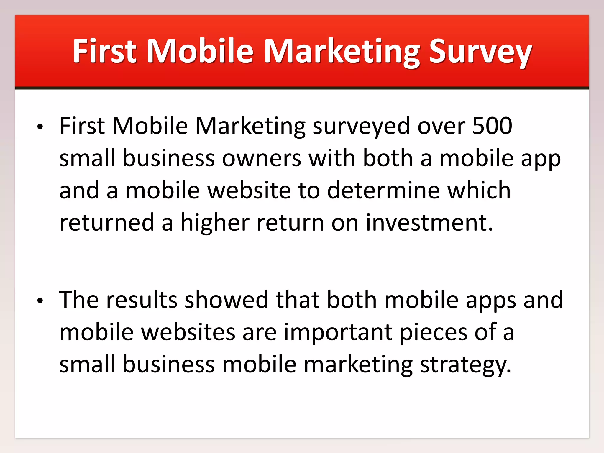 A survey of 500 small businesses with both mobile apps and websites found that 73% said mobile apps returned a higher ROI. Customers also preferred apps over mobile websites. Apps were better than websites for getting new customers (75% vs 25%) and retaining repeat customers (86% vs 14%). However, the document advocates that both apps and mobile-optimized websites are important for a complete mobile strategy. While apps provide richer experiences, websites allow access without downloading and are less expensive to develop than native apps. The company promotes developing both an app and website to reach all mobile users and maximize marketing opportunities like push notifications.