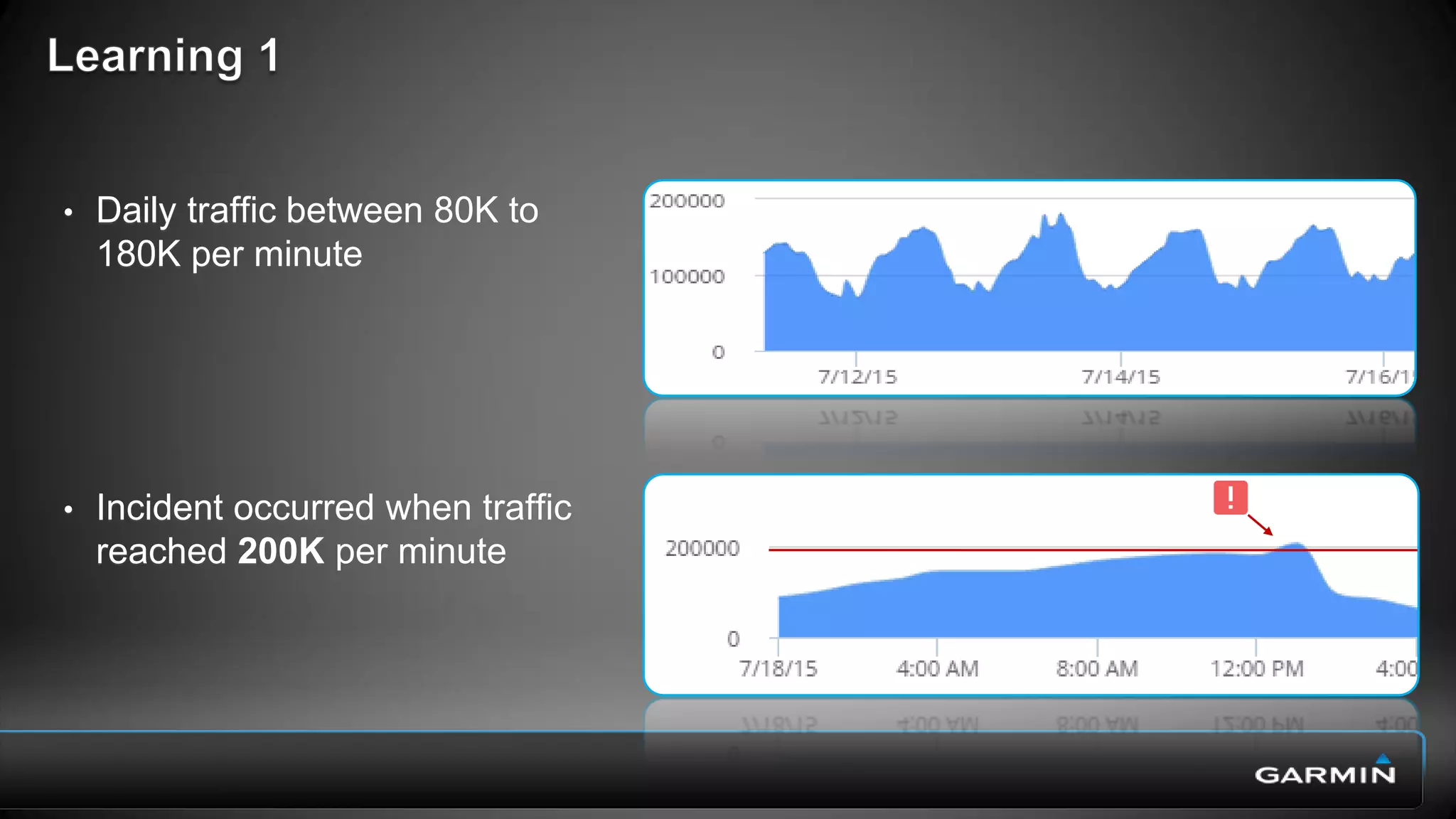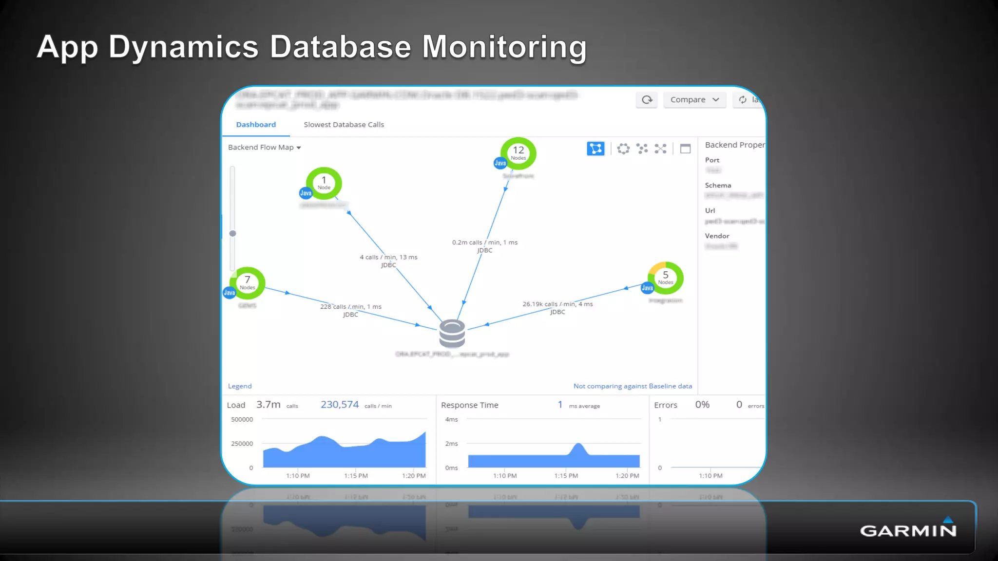 The document discusses how Garmin enhanced its operational capabilities during the Christmas peak season using AppDynamics' performance monitoring solutions. By increasing database capacity and reducing reliance, Garmin was able to manage significant spikes in traffic, leading to a 6x increase in user engagement and a 5x increase in database capacity. This transformation allowed Garmin to provide a better customer experience beyond just selling devices.