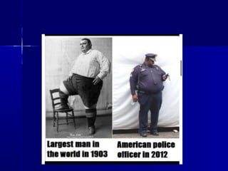 The document discusses childhood obesity and its causes. It notes that obesity rates have risen sharply over the past few decades due to dietary changes. Recommendations in the 1980s to reduce fat intake and emphasize carbohydrates have paradoxically contributed to weight gain and associated health issues like diabetes. Current research suggests dietary fat and protein are more satiating than carbohydrates and do not raise insulin levels in the same way. A balanced, less carbohydrate-focused diet may help address obesity and related diseases.