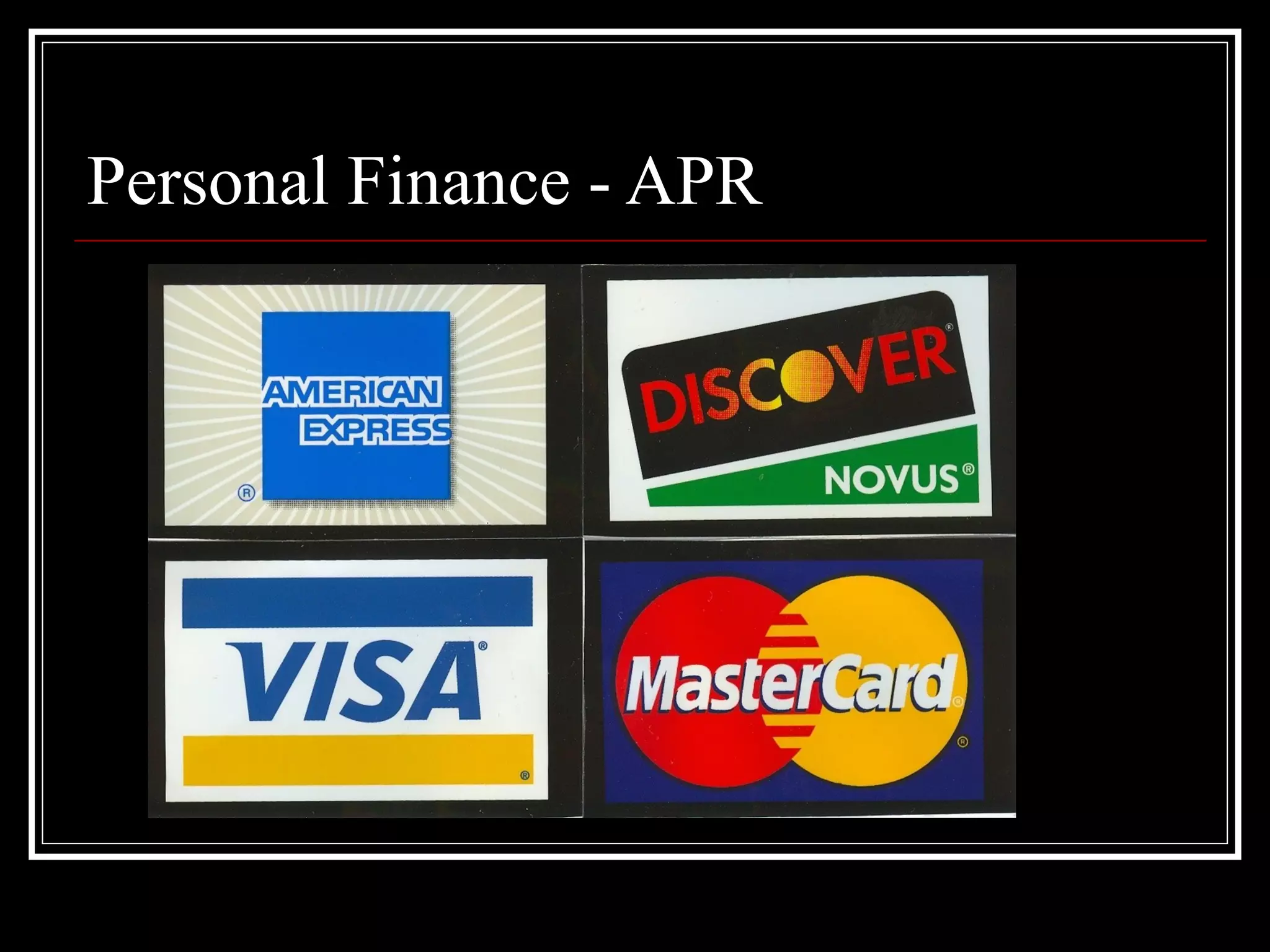 The APR (Annual Percentage Rate) formula is used to calculate the interest rate on loans. It takes into account the finance charge, number of payment periods in a year, principal amount borrowed, and total number of payments. For an example item costing $1450 with a $250 down payment and 24 monthly payments of $53 each, the calculations show the total cost is $1522, the finance charge is $72, and applying the APR formula results in an interest rate of 5.76%.