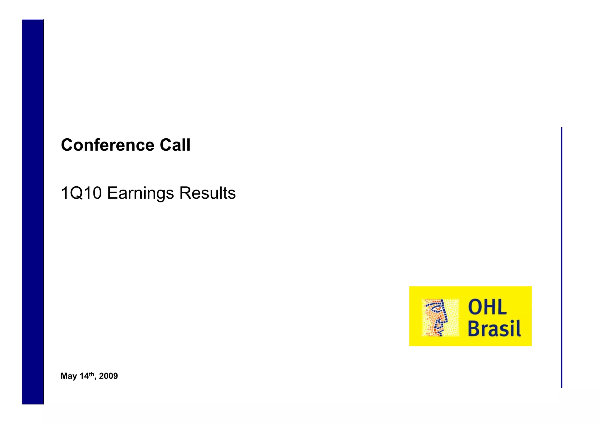 The document provides financial results and traffic data for OHL Brasil for the first quarter of 2010. Some key points: