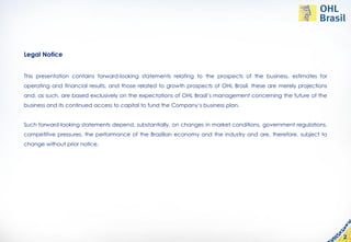 This document provides financial results and performance metrics for OHL Brasil for 2Q12 and comparisons to 1Q12 and 2Q11. Some key highlights: