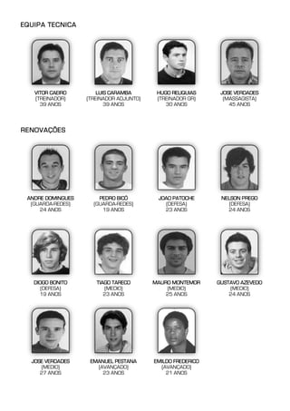 This document presents the technical team and roster for the Vasco da Gama football club for the 2009/2010 season. It lists the coaching staff, renewed player contracts, new player acquisitions, and pre-season friendly matches. The roster includes players in defense, midfield, and attack positions signed from other Portuguese clubs in the region for the upcoming season.