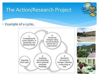 This document discusses a research project that aims to promote and assess students' critical spatial thinking skills through the use of geospatial technologies. The project seeks to determine if geospatial technologies can effectively develop and evaluate critical spatial thinking in the context of education for sustainable development. The methodology involves a literature review on spatial and critical thinking, focus groups with specialists and students, developing learning goals involving geospatial technologies, and assessing critical spatial thinking through fieldwork activities. Preliminary findings from focus groups with students indicate that geospatial technologies help promote competencies like environmental responsibility and allow students to explore places they have never been to before. Students also felt they had fun while learning through this approach. The researchers conclude that further focus should be placed on the "