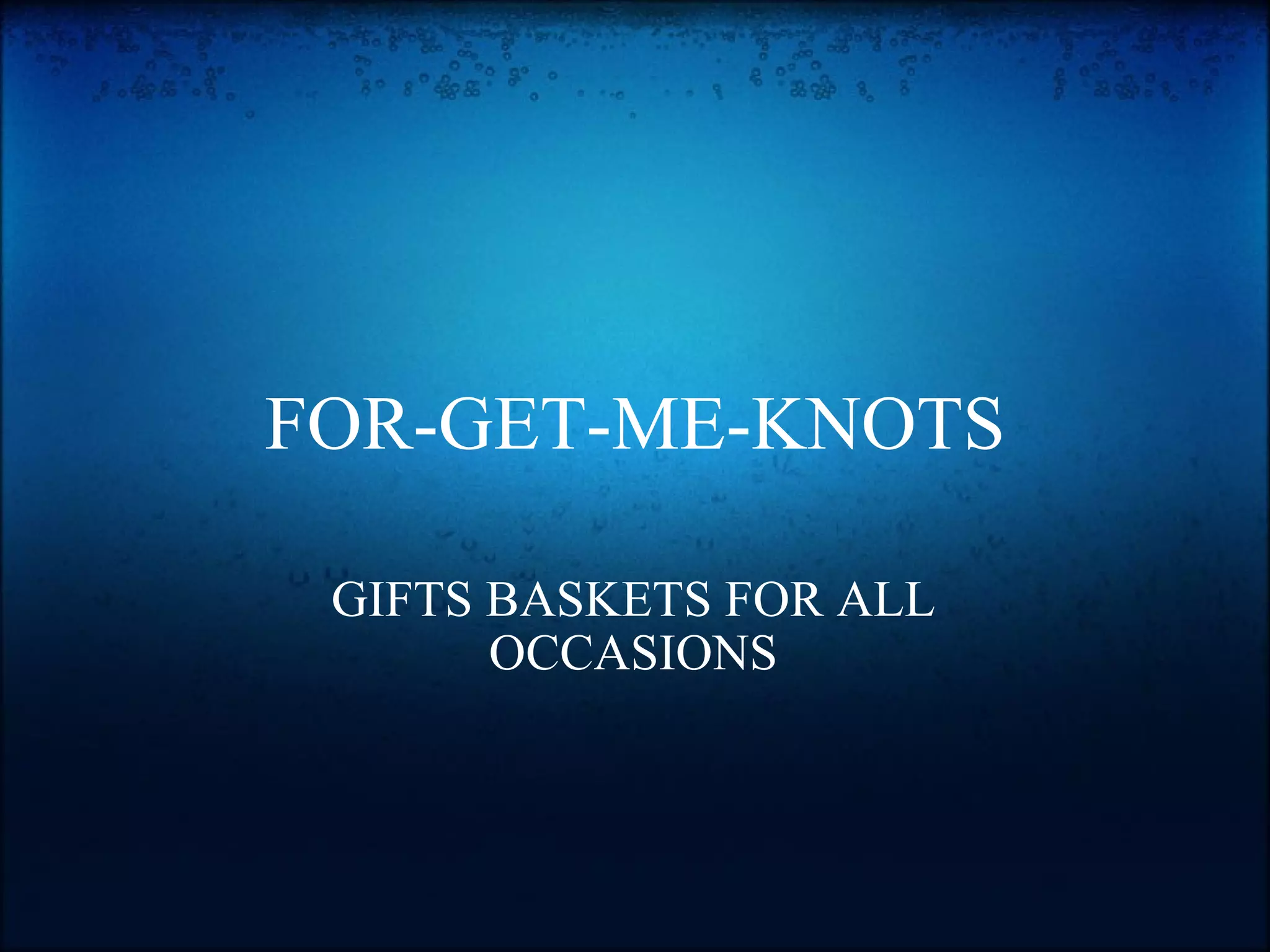 This document advertises gift baskets from For-Get-Me-Knots Gifts that are tied with ribbons and bows and can be ordered by calling 801-680-1104. The baskets come in a variety of themes like pamper, birthday, wedding, anniversary, baby girl, baby boy and over the hill and are designed by Kay Wells.