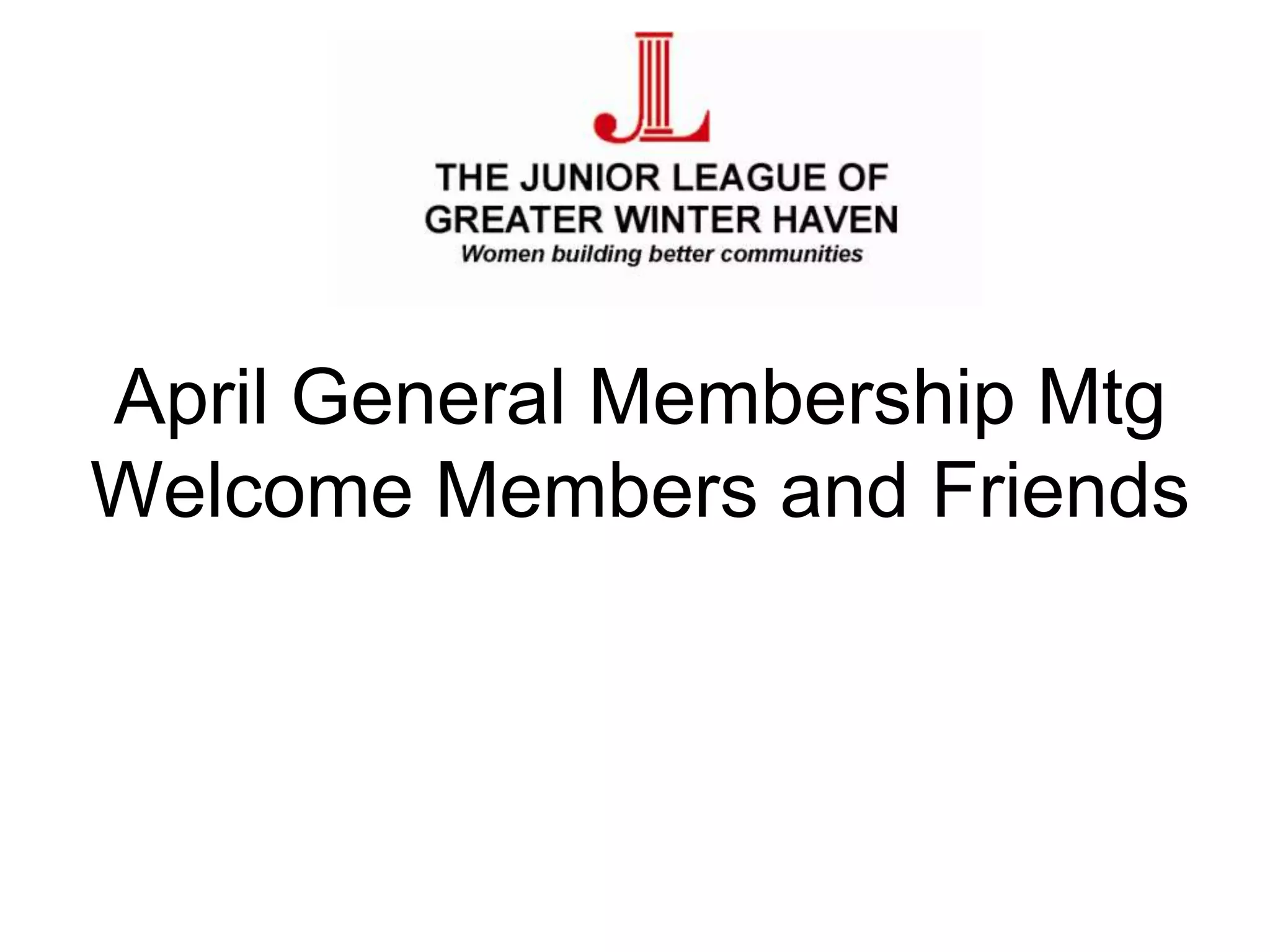 The document summarizes the April general membership meeting of the Junior League of Greater Winter Haven. It welcomes members and friends to the meeting. It highlights the purpose of the organization to develop women's potential and improve the community through volunteer work. It also welcomes and recognizes the 2008-2009 provisional class. Various fundraising opportunities and upcoming events are announced, including a family planner sale, blood drive, and teacher grant winners. Birthdays of members are also listed.