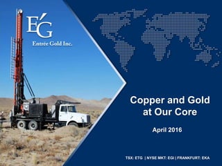 This document provides an overview of Entrée Resources and why it is a good investment opportunity. It discusses Entrée's financial strength with $15.6 million in cash, its quality copper and gold assets in Mongolia and Nevada which are well positioned for future development. It also notes major investors including Rio Tinto and its diverse team. The document contains forward-looking statements and cautions readers not to assume that resource estimates will be converted into reserves or that inferred resources exist or are economically viable.