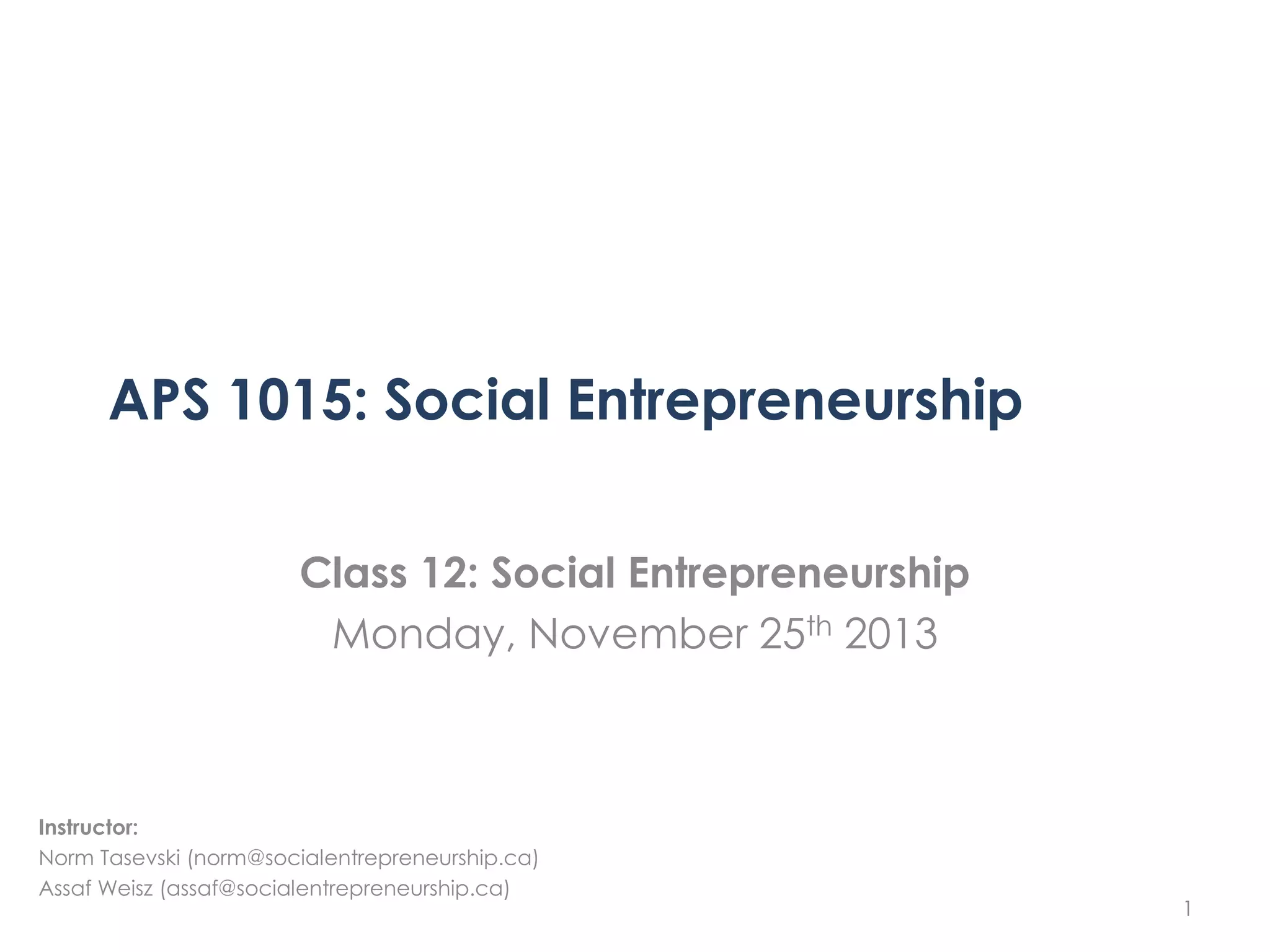 The document outlines the agenda for a social entrepreneurship class, detailing presentation guidelines, emerging issues, and evaluation methods. It discusses trends in social entrepreneurship and the challenges faced in deal flow and measurement systems. Additionally, it emphasizes the importance of a strong business model and preparation for investor pitches.