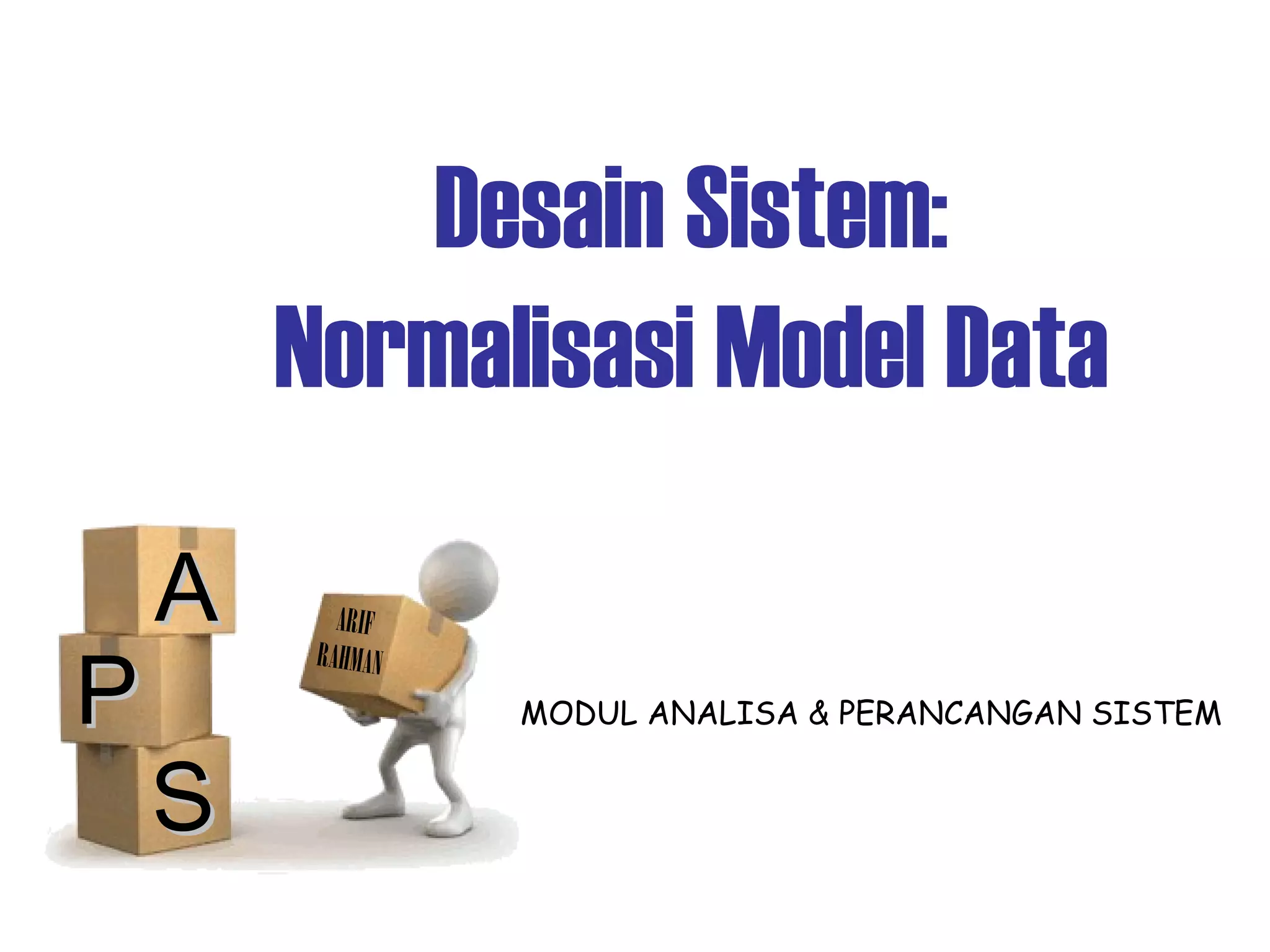 Dokumen ini membahas modul analisa dan perancangan sistem dengan fokus pada normalisasi model data dalam pengembangan sistem. Terdapat penjelasan mengenai tahapan pengembangan sistem, termasuk perencanaan, analisis, desain, implementasi, dan pemeliharaan, serta teknik normalisasi untuk mengorganisir data. Contoh aplikasi dalam basis data akademik diilustrasikan dengan berbagai bentuk normalisasi, yaitu 1NF, 2NF, dan 3NF.