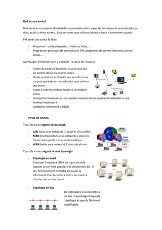 Una xarxa es un conjunt d’ordinadors connectats entre si per tal de compartir recursos (discos