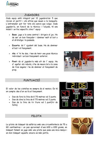joc cadascun, que cerquen d' introduir una pilota dins de la cistella defensada per