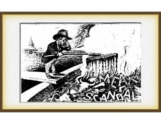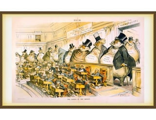 The document summarizes the Progressive Era in the United States from 1890 to 1920. It describes the roots of progressivism in rapid industrialization, immigration, and rejection of social Darwinism. Progressives were mainly middle and upper-class citizens who believed the government could enact reforms to address problems and continue social advancement. Their goals included trust-busting, increasing democracy, labor reforms, consumer protections, and social justice issues like civil rights and women's rights. Muckrakers like Upton Sinclair exposed issues through investigative journalism. Under Teddy Roosevelt, the federal government took a more active role in regulating industry and passing reforms like the Meat Inspection and Pure Food and Drug Acts.