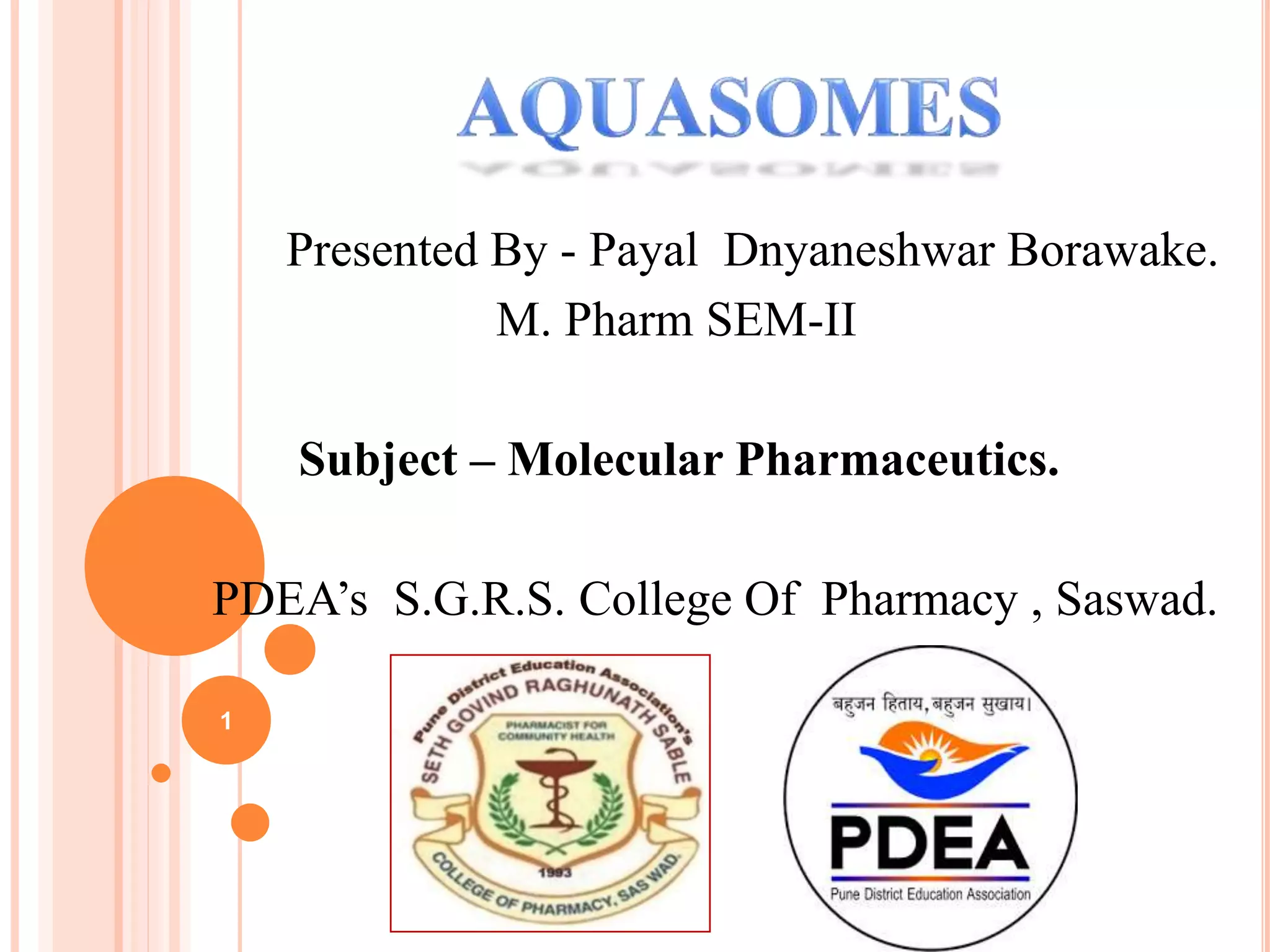 The document discusses aquasomes, which are self-assembled three-layered nanostructures that protect and preserve fragile biological molecules. It details their preparation process, which includes creating a ceramic core, coating it with carbohydrates, and immobilizing drugs. Applications of aquasomes include delivering vaccines, insulin, and as a red blood cell substitute, demonstrating their potential in drug delivery systems.