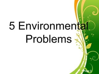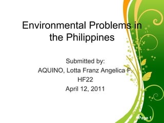 The document discusses several key environmental problems in the Philippines: