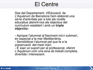 El Centre Desdel Departament d'Educació de L'Aquàrium de Barcelona hem elaborat una sèrie d'activitats per a tots els nivells educatius atenint-nos als objectius del currículum establert i amb un triple objectiu: - Apropar l’alumnat al fascinant món submarí, en especial a la mar Mediterrània. - Sensibilitzar l’alumnat pel que fa a la preservació del medi marí. - Ésser un suport per al professorat, oferint L’Aquàrium com una eina de treball completa, divertida i interessant.