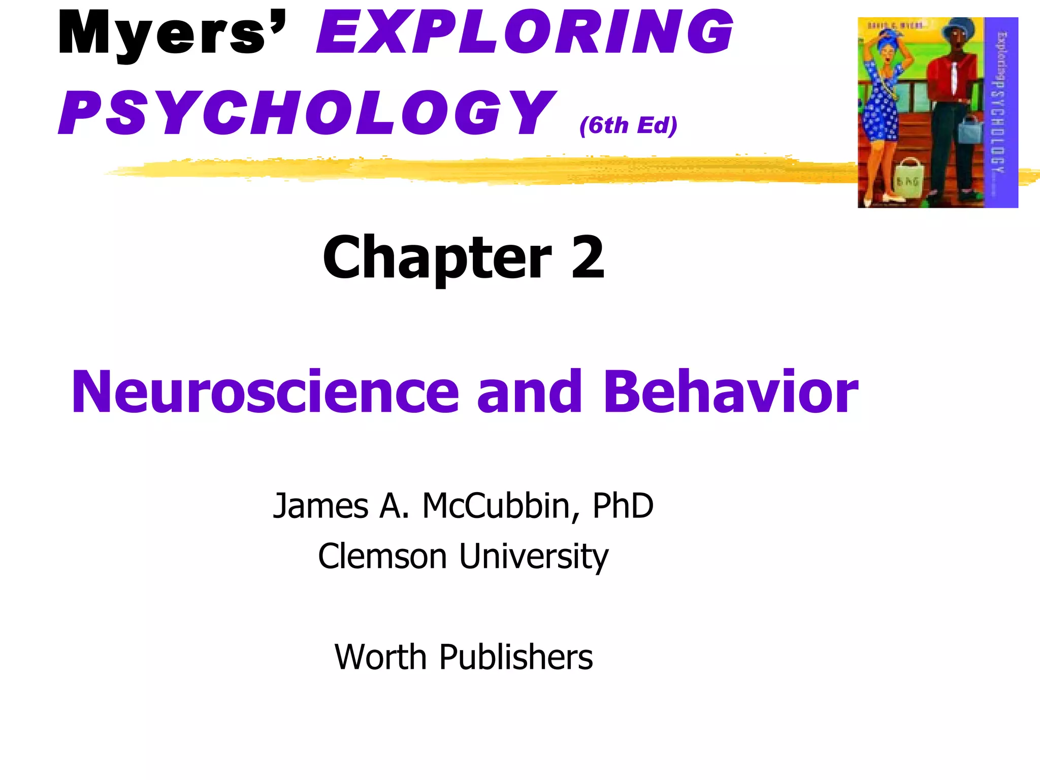 This document provides an overview of the key concepts in biological psychology and neuroscience covered in Chapter 2 of Myers' Exploring Psychology textbook. It discusses neural communication including neurons, action potentials, synapses, and neurotransmitters. It also summarizes the structure and function of the nervous system including the central nervous system, peripheral nervous system, and autonomic nervous system. Additionally, it outlines the major parts of the brain like the cerebral cortex, limbic system, and endocrine system.