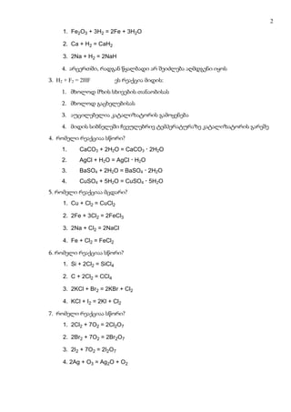 2. რომელ რეაქციაშია წყალბადი აღმდგენლის როლში?