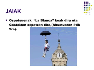 JAIAK Ospetsuenak “La Blanca” koak dira eta Gasteizen ospatzen dira,(Abustuaren 4tik 9ra).