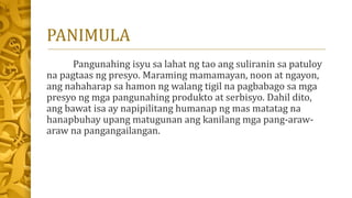 Ang aralin ay nakatuon sa implasyon bilang isang ekonomikong isyu na nakakaapekto sa lahat, kung saan ang patuloy na pagtaas ng presyo ng mga bilihin ay nagpapahirap sa mga mamamayan. Tinalakay ang mga dahilan ng implasyon, epekto nito sa iba't ibang sektor, at ang mga paraan upang maayos at maiwasan ang implasyon sa ekonomiya. Sa huli, pinapakita ng aralin ang importansya ng tamang patakaran ng pamahalaan upang matulungan ang mga tao sa kanilang pang-araw-araw na pangangailangan.