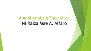 Ang dokumento ay tungkol sa aralin kung paano gamit ang pang-abay na pamanahon, panlunan, at pamaraan, na nakatuon sa alamat ng face mask. Tinatalakay nito ang mga tanong na may kaugnayan sa mga sitwasyon nina Face at Mask habang nagbibigay ng mga halimbawa ng iba't ibang uri ng pang-abay. Ang aralin ay naglalaman din ng mga gawain upang magsanay sa pagbuo ng mga pangungusap gamit ang mga pang-abay.