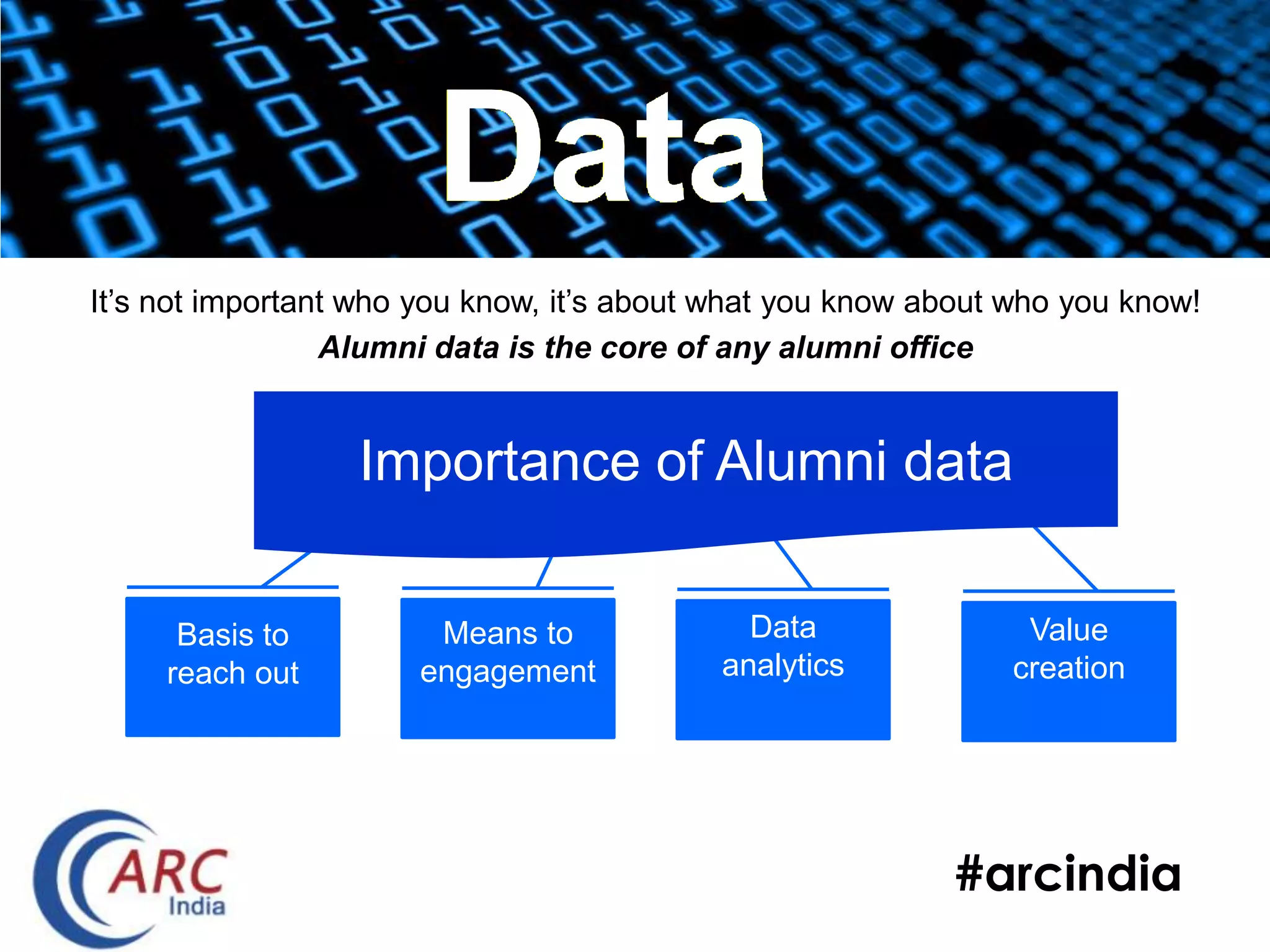 The document discusses the essential role of data and communication in alumni relations, emphasizing the importance of collecting and effectively managing alumni data for engagement and analysis. It outlines best practices for data tracking, storage, and communication strategies, along with scenarios for utilizing alumni data to improve outcomes. The session encourages interactive participation and highlights various communication methods to keep alumni informed and engaged.
