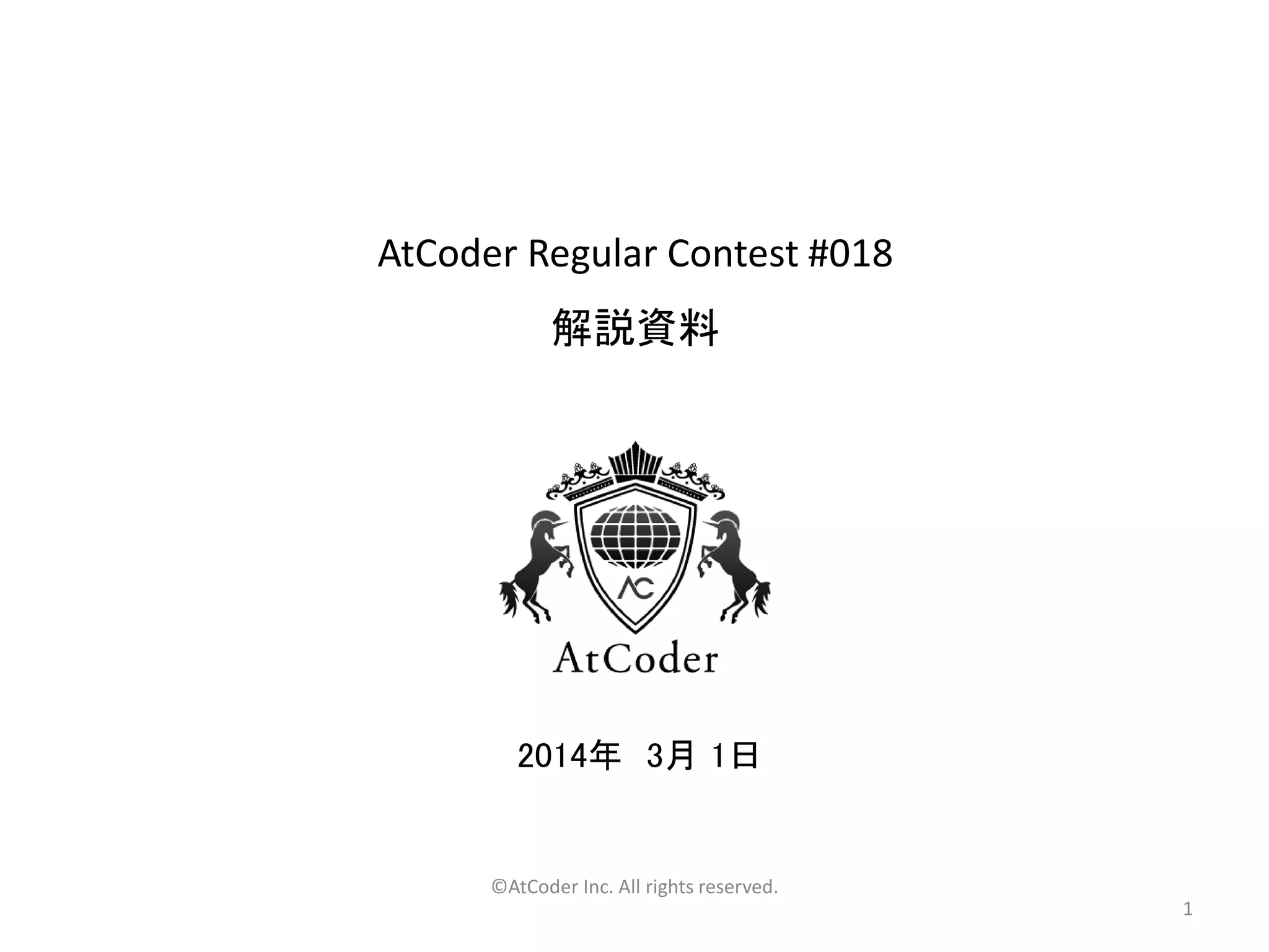 AtCoder Regular Contest 018 解説
