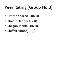 The peer ratings document gave all group members the highest rating of 10/10.