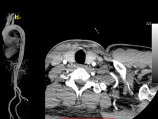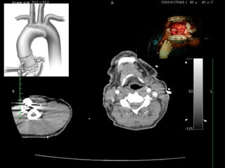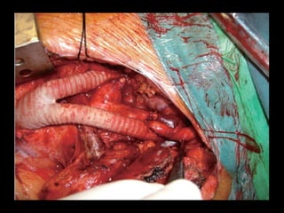 This document summarizes Dicky Aligheri's experience with hybrid procedures for aortic arch involvement between 2013-2014 at the National Cardiac & Vascular Centre Harapan Kita in Jakarta. It describes several case studies of patients who received treatments like total arch replacement, hemi arch replacement, and the frozen elephant trunk procedure. It also reviews literature on debates around the best surgical strategies for aortic arch pathology and the safety and efficacy of hybrid techniques compared to open surgery.