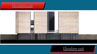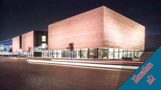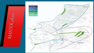 - Concept drawings and photos of the town hall are included, along with details on its design, materials, and goals to protect from noise while connecting different parts of the city.