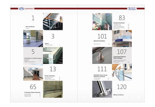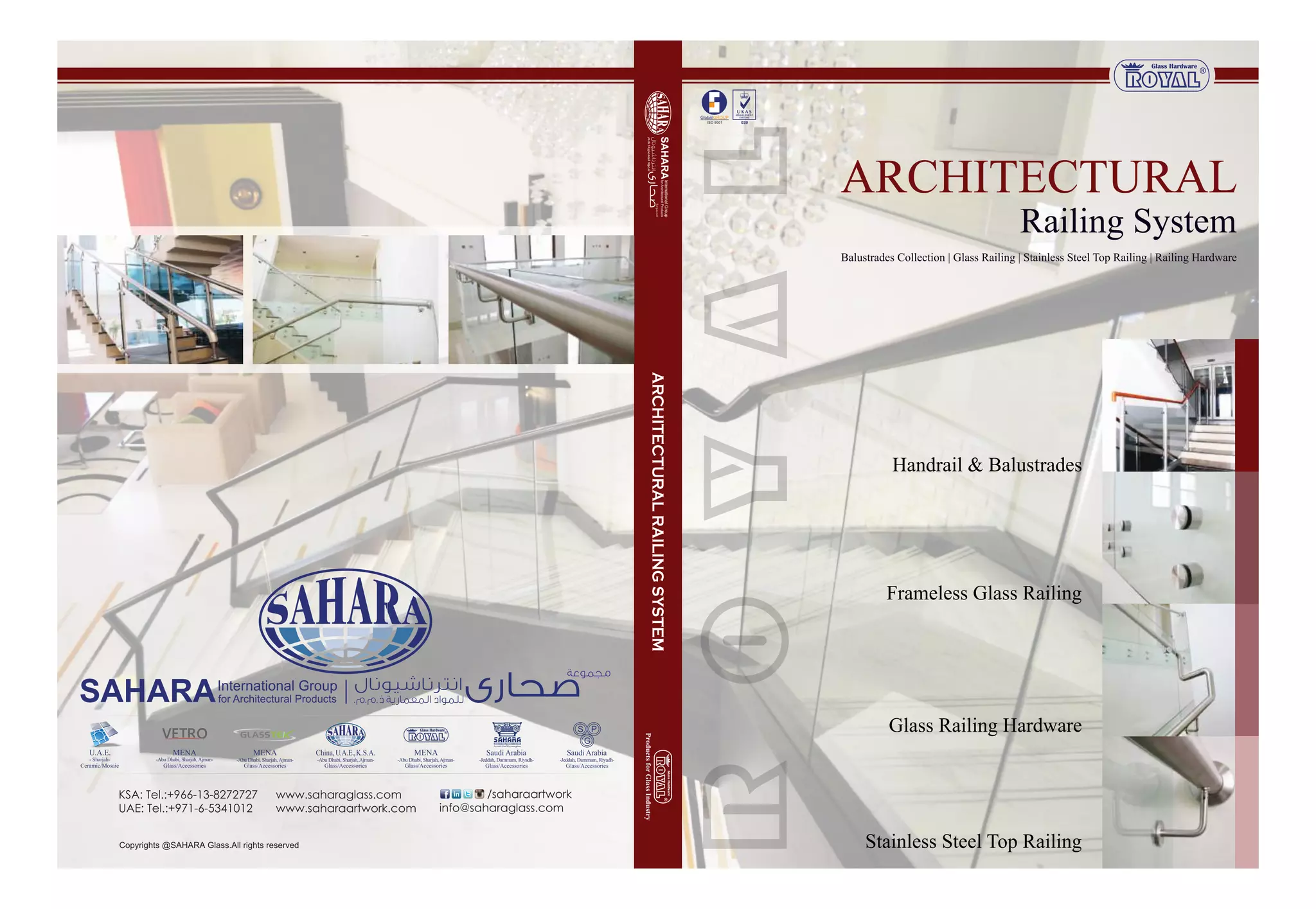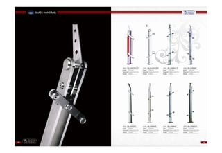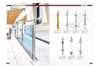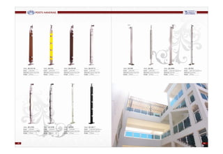 This document contains a list of street names and locations in various cities in the United Arab Emirates including Sharjah and Ajman. It also includes technical specifications and diagrams for metal railing and post systems.