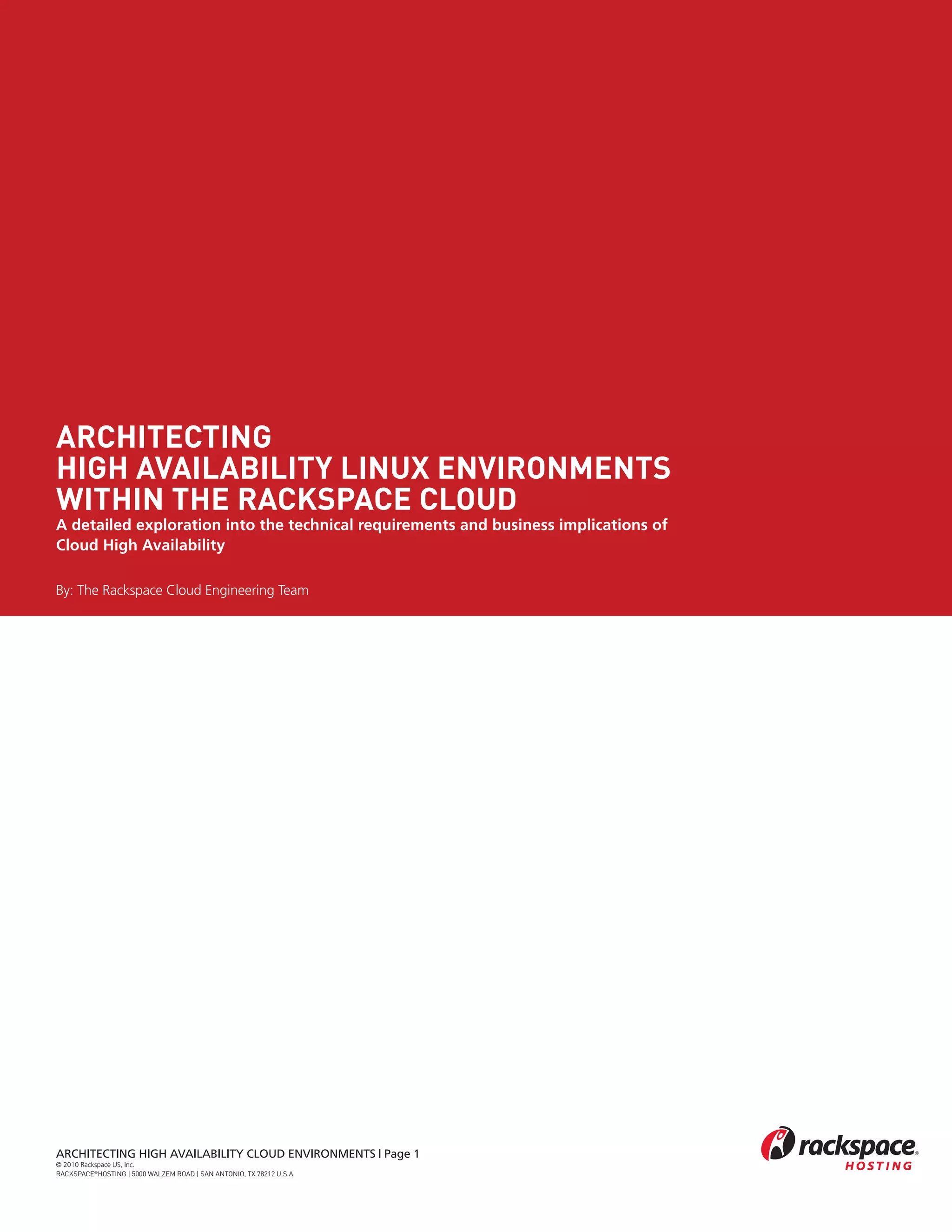 The document outlines the process for architecting high availability (HA) environments on Rackspace's cloud infrastructure, detailing the technical requirements and implications for businesses. It emphasizes the transition from traditional dedicated resources to cloud-based solutions, providing guidelines for planning, designing, and implementing HA configurations, including load balancers, web servers, and database setups. The paper also addresses the importance of scaling, management tools, capacity planning, and security measures necessary to maintain operational continuity in digital environments.