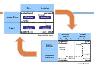 This document discusses architecting multi-sided businesses. It begins by explaining that modern businesses need to operate in multiple markets simultaneously and satisfy different stakeholders. The emerging response is to configure the enterprise as a platform of services rather than a traditional value chain. However, this transformation involves profound architectural challenges. It then discusses various topics related to architecting multi-sided businesses including viewing the supply chain as a stack, challenges with stack design, and strategic choices regarding where to position the business in the stack. The document emphasizes the importance of understanding indirect relationships in multi-sided markets and delivering indirect value in addition to direct value.