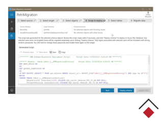This document discusses strategies for migrating legacy .NET applications to Azure. It begins by outlining expectations and common scenarios for legacy vs cloud-native applications. It then covers considerations for migrating different application types like thick clients, websites, and services. Key aspects addressed include database options, security, performance, and pricing. The document provides a 3 step approach of assessment, migration, and optimization. It offers numerous Azure-specific resources and tools to assist with migration.