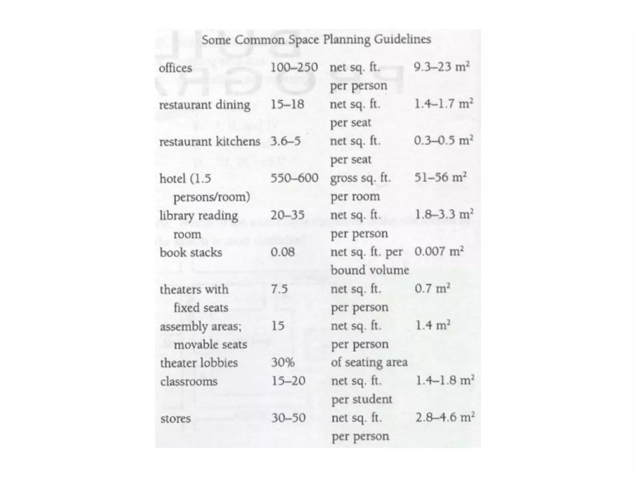 Space Identification andAllocation Building efficiency Estimate the amount of additional square footage (meters) that will be required to account for unprogrammed spaces including: Circulation spaces Walls Mechanical and electric rooms Janitor’s closets Rest rooms Miscellaneous storage N G E X ÷ ÷