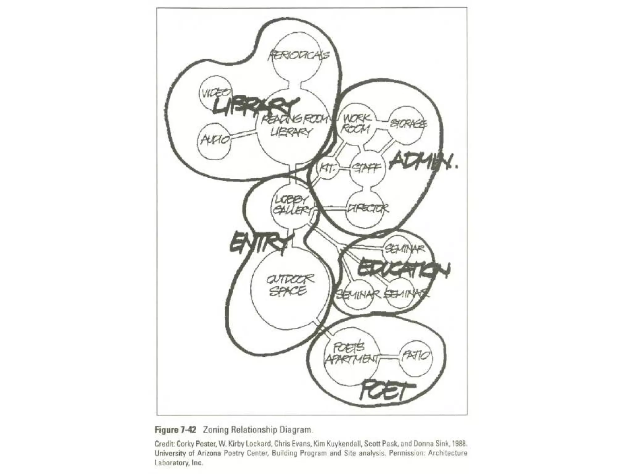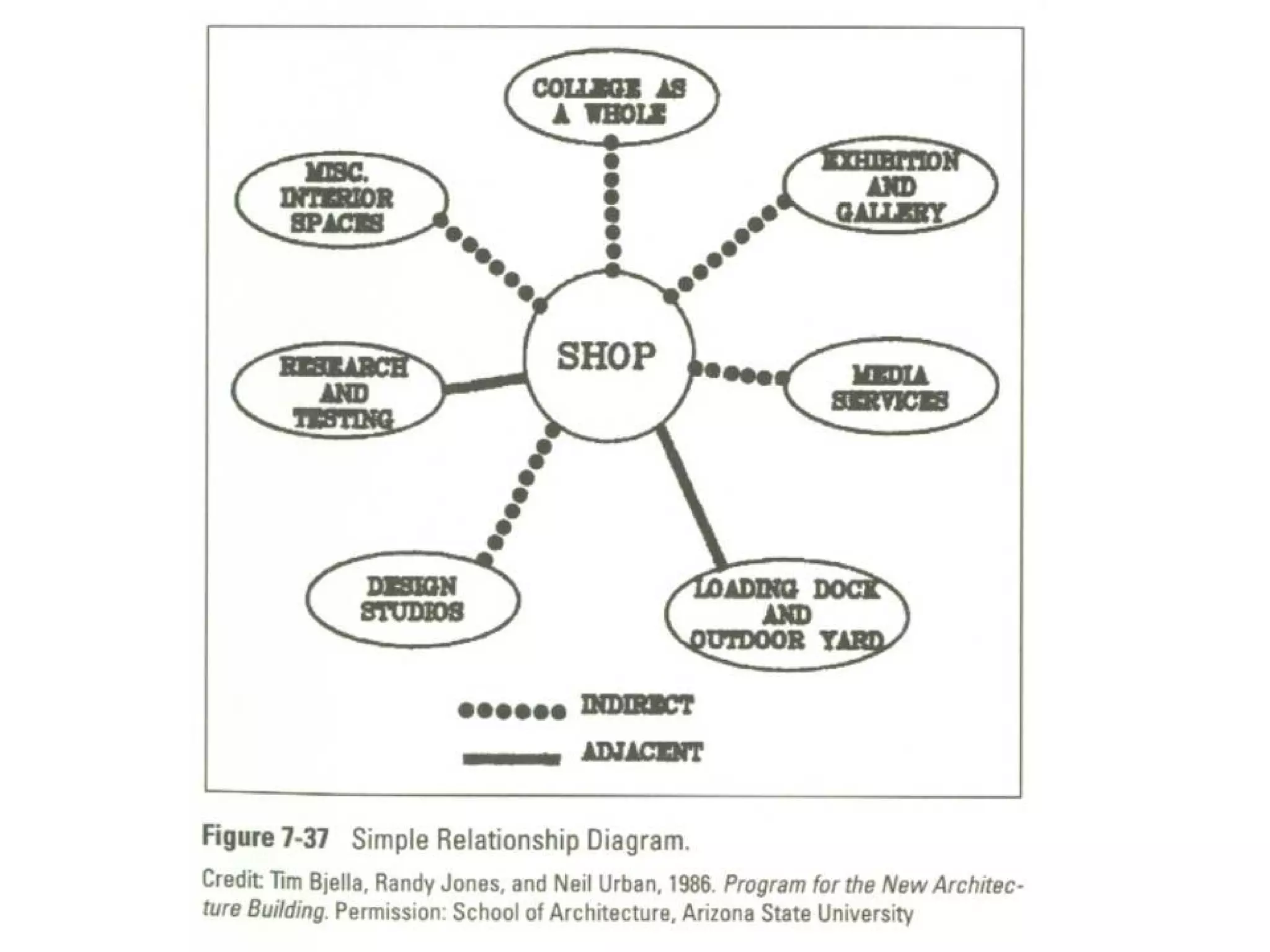 Relationship Diagrams Forsimple buildings , it may be possible to prepare a diagram which, like the relationship matrix, shows the interrelationships of all interior and exterior spaces.