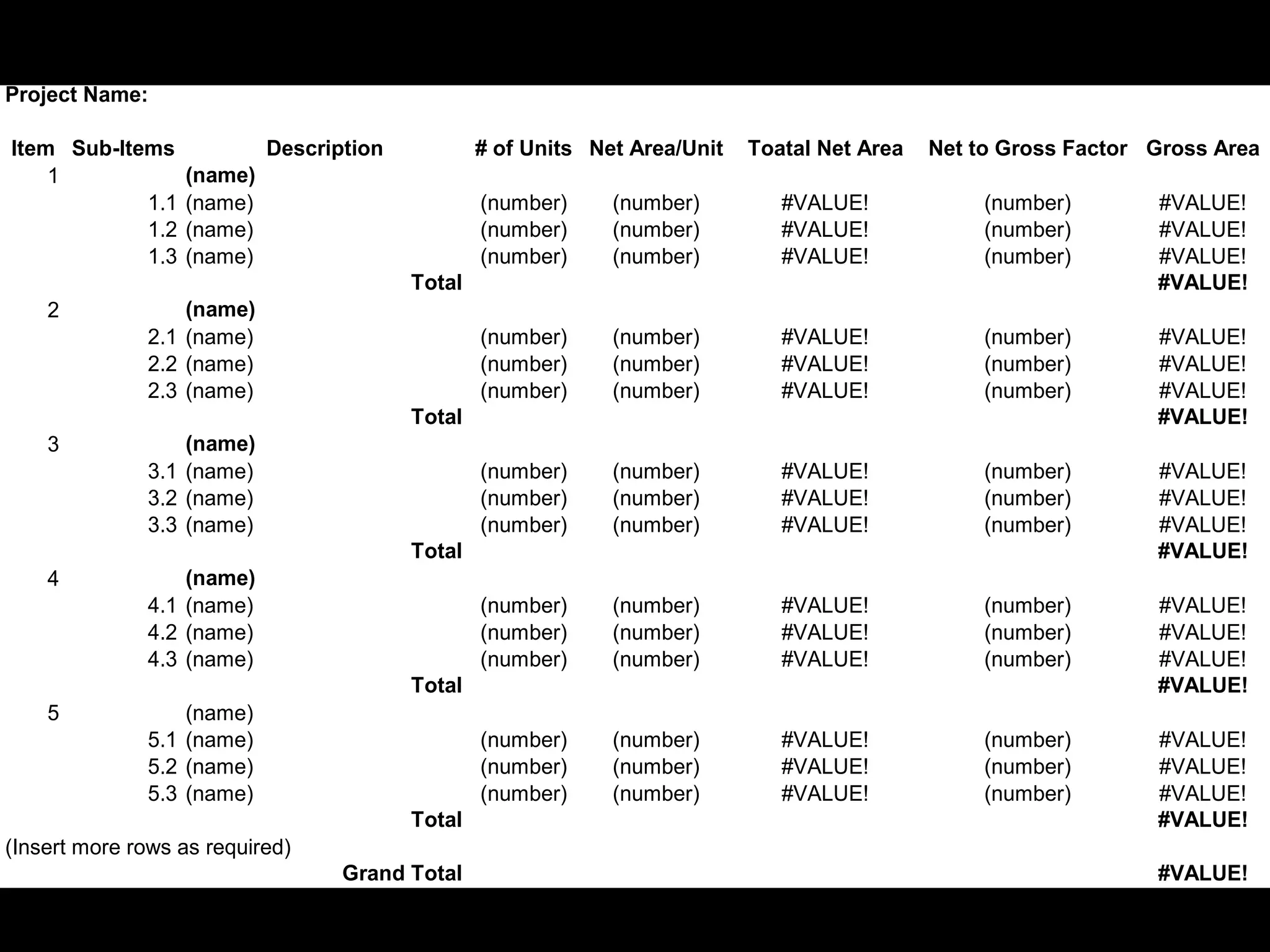 Efficiency = NetArea / Gross Area Building efficiency