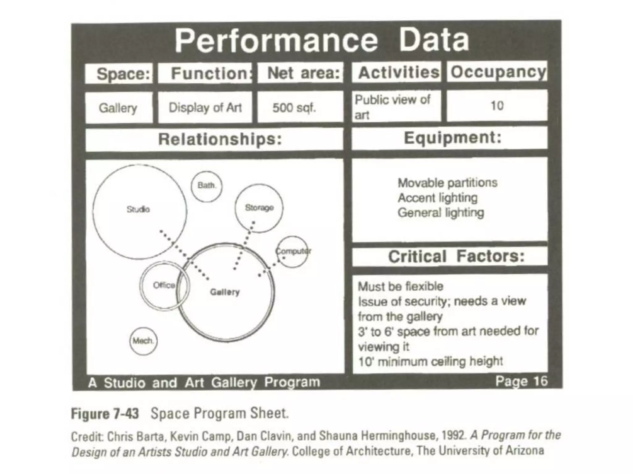Space Program SheetA space program sheet provides a complete miniature program for the space covered. They are circulated throughout the client’s organization for review, comment, and correction. The following are samples of program sheets.