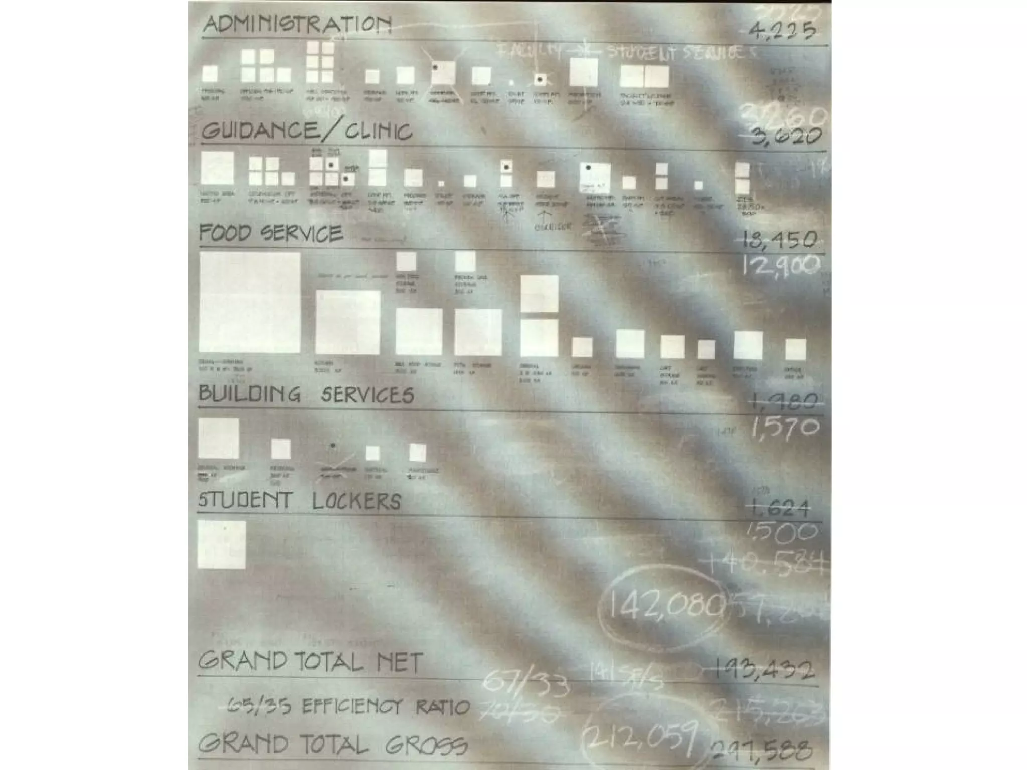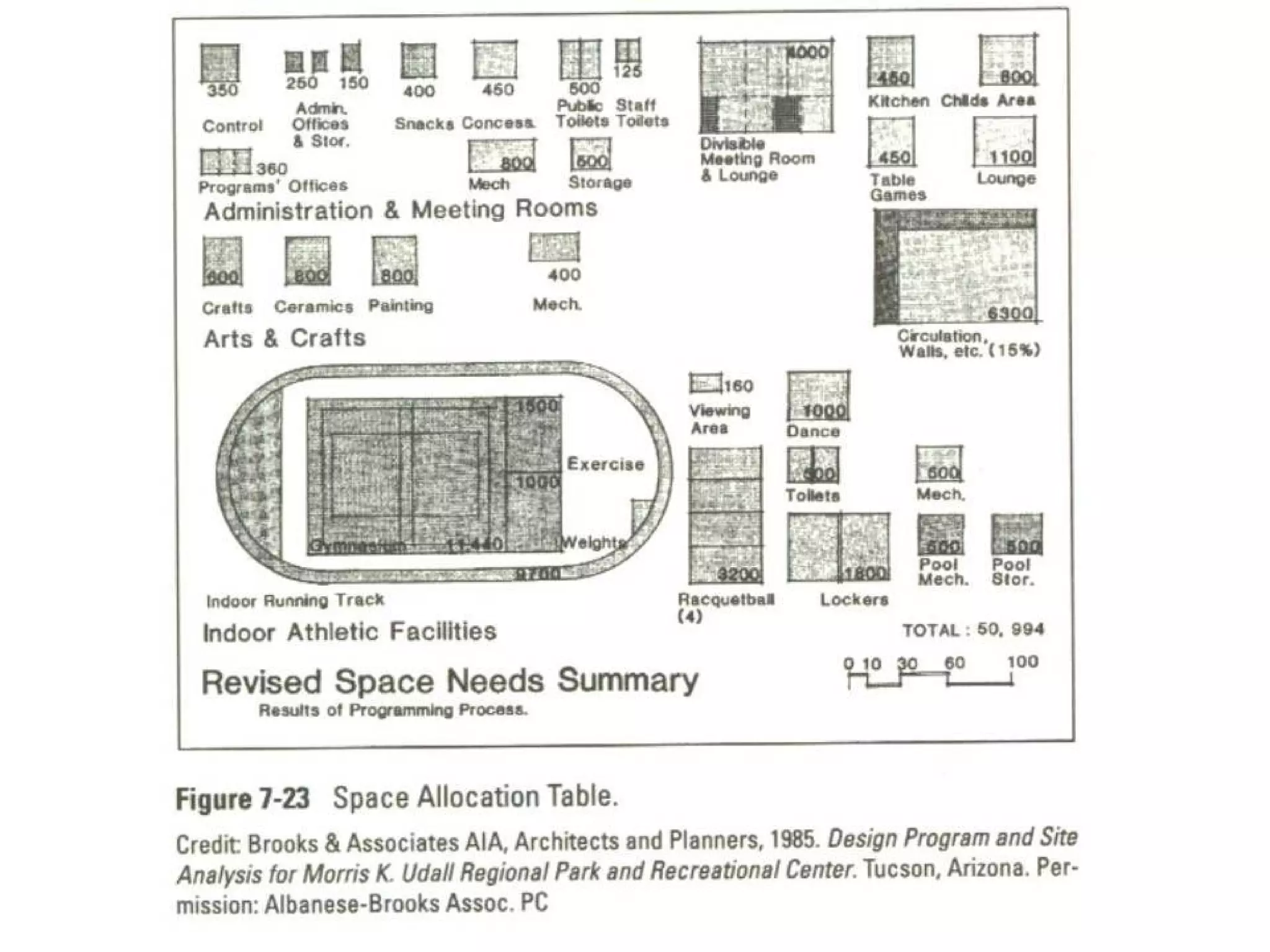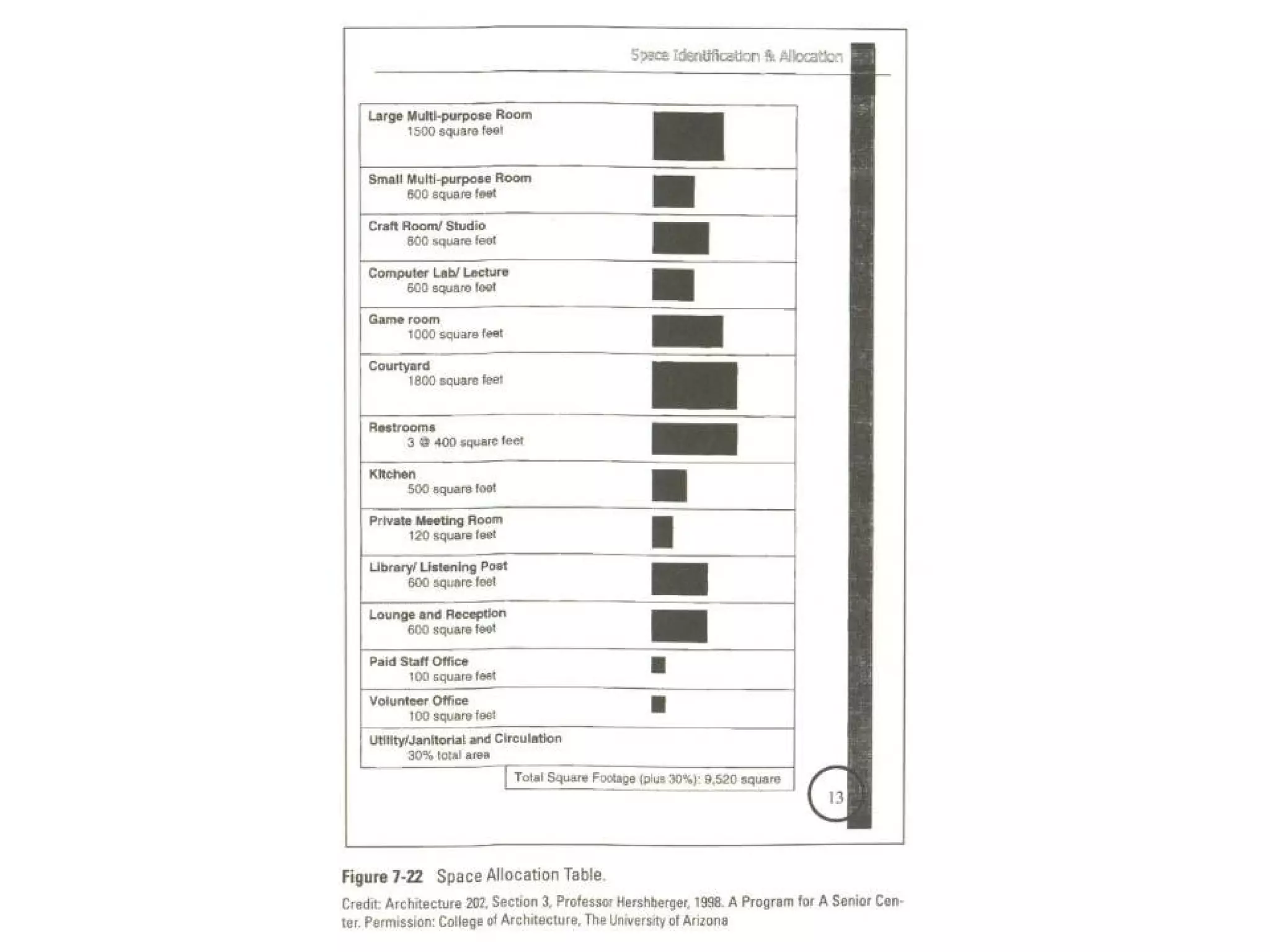 Space Identification andAllocation Iconic representation Illustrate space size with small rectangular figures at the same scale. Effective in showing laypersons the comparative size of spaces . Helpful to the designer Designers are often more comfortable with iconic rather than numeric imagery.
