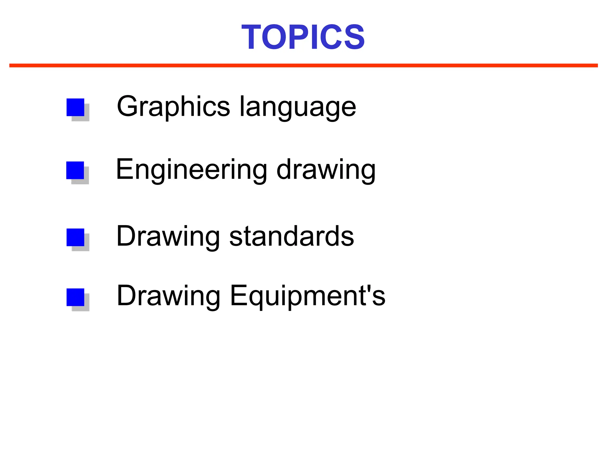 Graphic language is more effective than word language for technical drawings as it can describe the size, shape, and features of an object concisely and allow others to visualize it. The document discusses drafting standards, materials, and instruments. It explains that drawings are made up of graphics and words, with graphics mainly describing shapes and words providing details on size, location, and specifications. A variety of drawing materials like paper, pencils, tapes and instruments like boards, scales and templates are introduced for making accurate technical drawings.