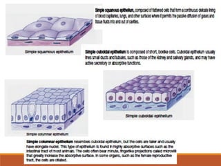 The document outlines the levels of organization in animals, detailing the protoplasmic, cellular, tissue, organ, and organ-system grades of organization, along with specialized tissues including epithelial, connective, muscular, and nervous tissues. It explains the structure and function of these tissues, their classifications, and their roles in various bodily functions. Additionally, the document discusses animal symmetry types such as spherical, radial, and bilateral symmetry, highlighting their significance in animal evolution and adaptation.