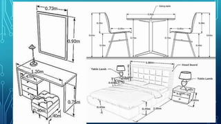 This document contains architectural standards and dimensions for interior spaces including furniture, bathrooms, kitchens, and parking. It includes human scale drawings, different ways to draw doors and measure with hands. Sections cover interior standards for rooms like kitchens, living rooms, and bathrooms. Furniture dimensions are provided for living rooms, bedrooms, dining rooms, and other areas. Parking and television dimensions are also included along with notes on right and wrong design approaches.